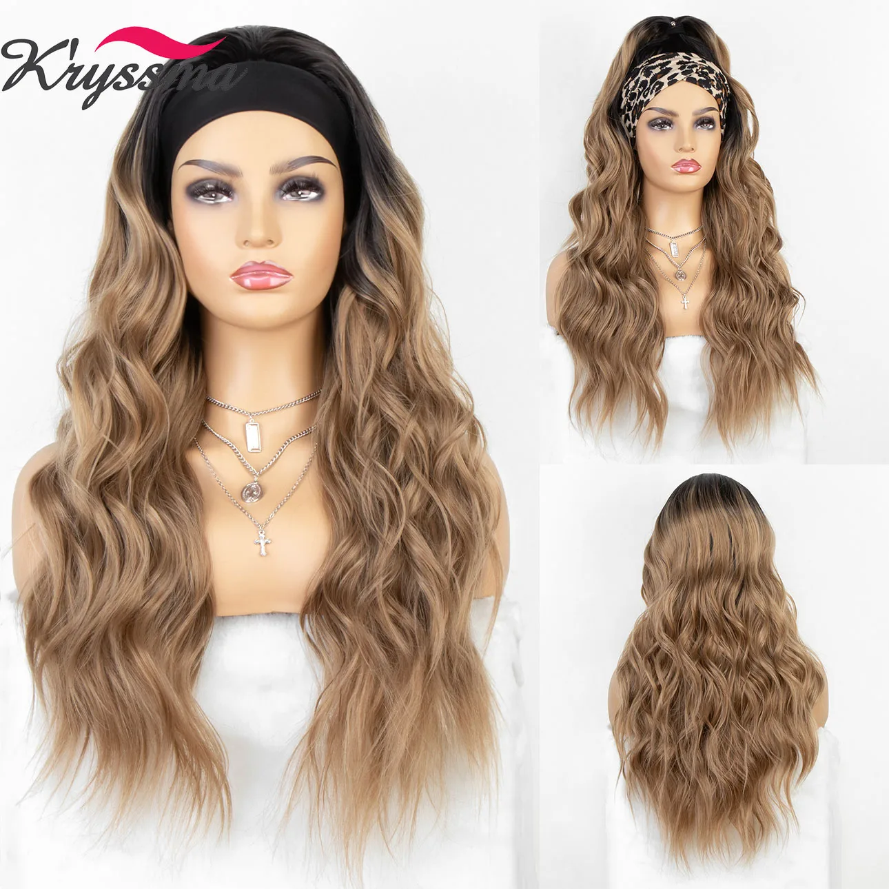 Длинная волнистая повязка на голову Kryssma, синтетические парики для женщин, искусственный волнистый светлый парик, подходит для повседневного косплея, Новинка