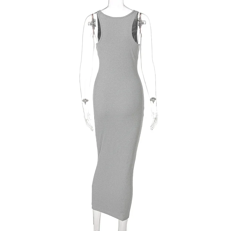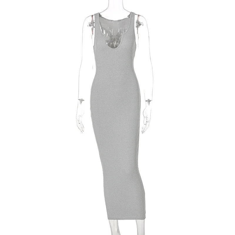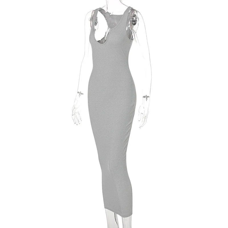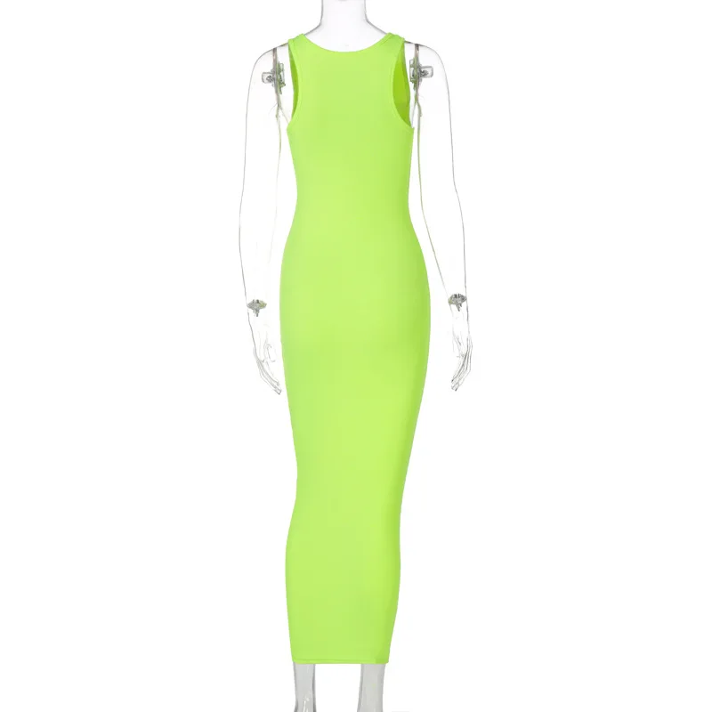 Hugcitar2021 однотонное обтягивающее платье макси без рукавов с ква...