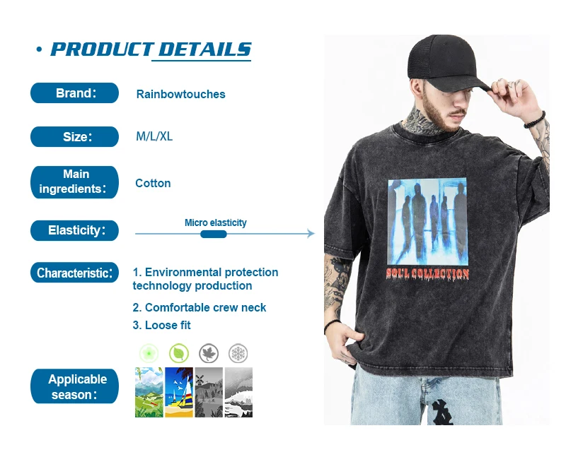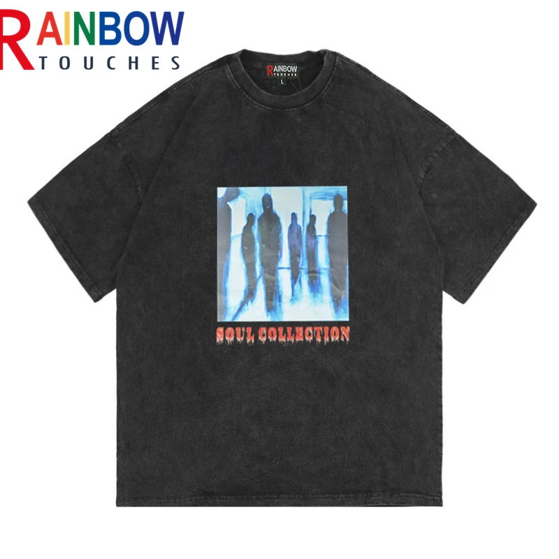 Футболка Rainbowtouches с кислотной стиркой для мужчин, летняя модн...