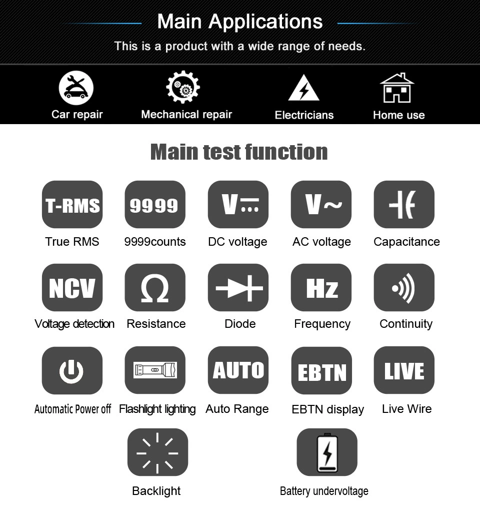 Параметры продукта:Вес 0,186 кгОбъем продукта 16,3 см * 7,3 см * 3,7 смНазначение: профессиональныйФункция измерения: емкость, сопротивление, напряжение переменного тока, напряжение постоянного токаАвтодиапазон: ДаТест на Зуммер непрерывности: ДаДиодный Тест: ДаХранение данных: ДаАвтоматическое выключение: ДаДиапазон напряжения постоянного тока: 600 вДиапазон напряжения переменного тока: 600 вМаксимальный дисплей: 9999Стандартные аксессуары:Упаковочная коробка * 1 хост-компьютер * 1 китайское и английское двухязычное руководство * 1 CR2032 3V кнопочный аккумулятор * 2Размеры:14 см * 7 см * 1,5 смТип батареи:Аккумулятор CR2032 3 в * 2