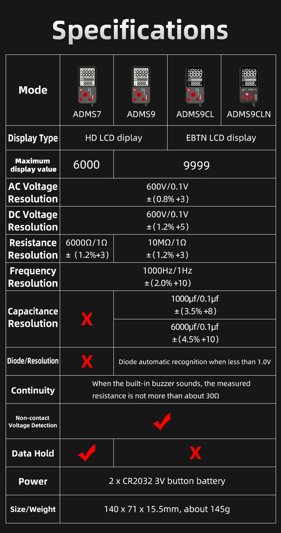 Мультиметр ADMS7 с ЖК-дисплеем 3,5 дюйма, 3 линии, 6000 отсчетов