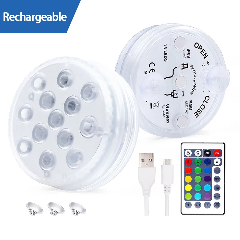 Погружной светильник с USB-зарядкой для бассейна, светодиодный ночсветильник RGB с присоской, уличная садовая подводная лампа с радиоуправлением
