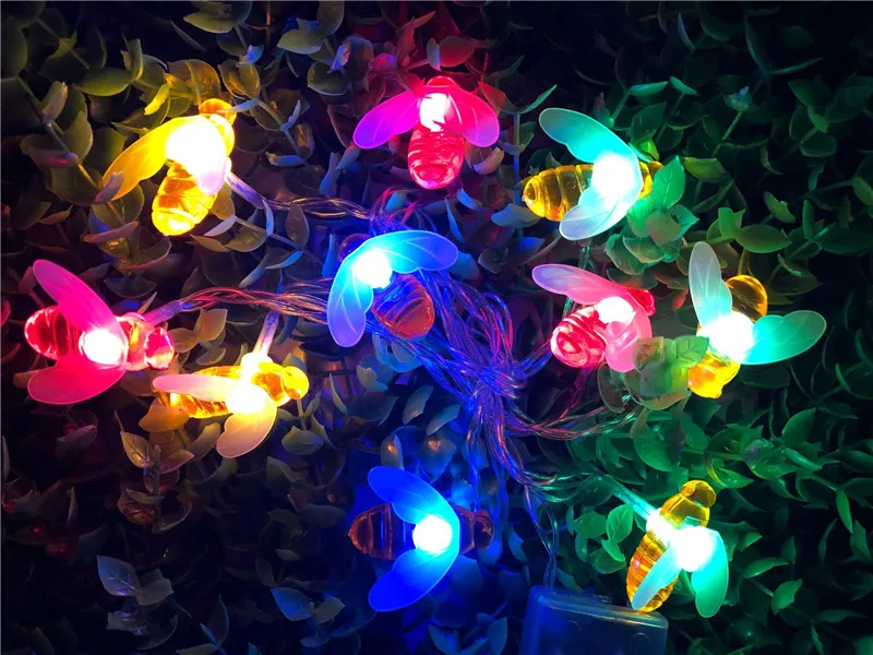 Светодиодная гирлянда на солнечной батарее, уличный шнурок с 20 светодиодами в форме пчелы, для дома, сада, забора, летнее украшение, 5 м