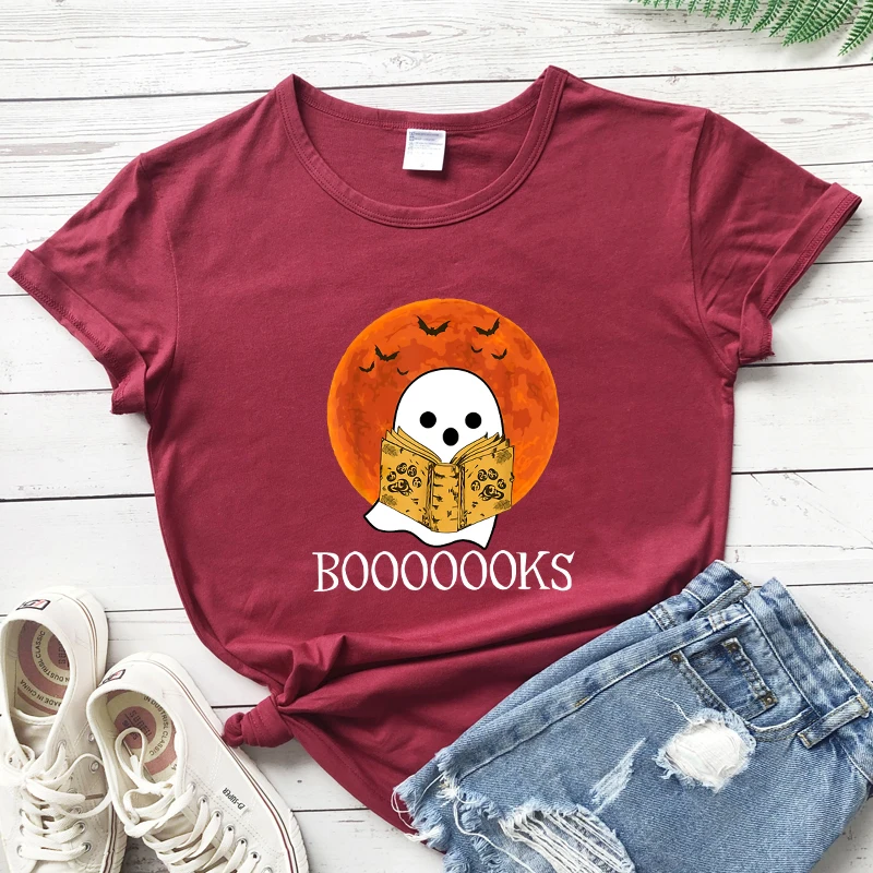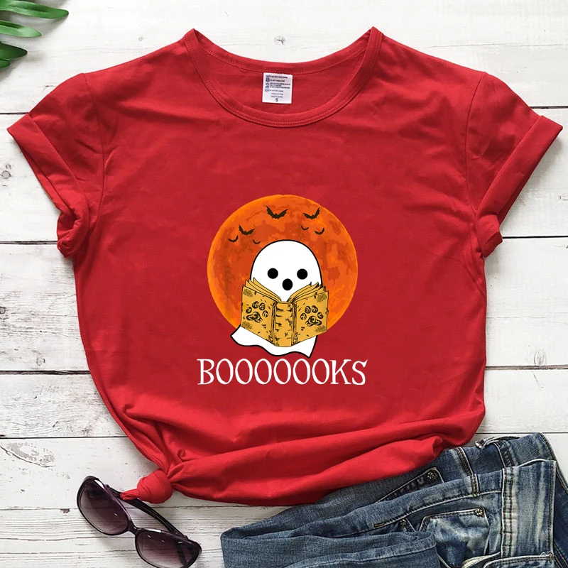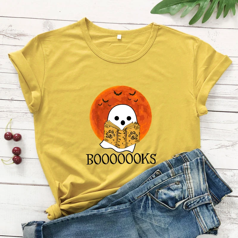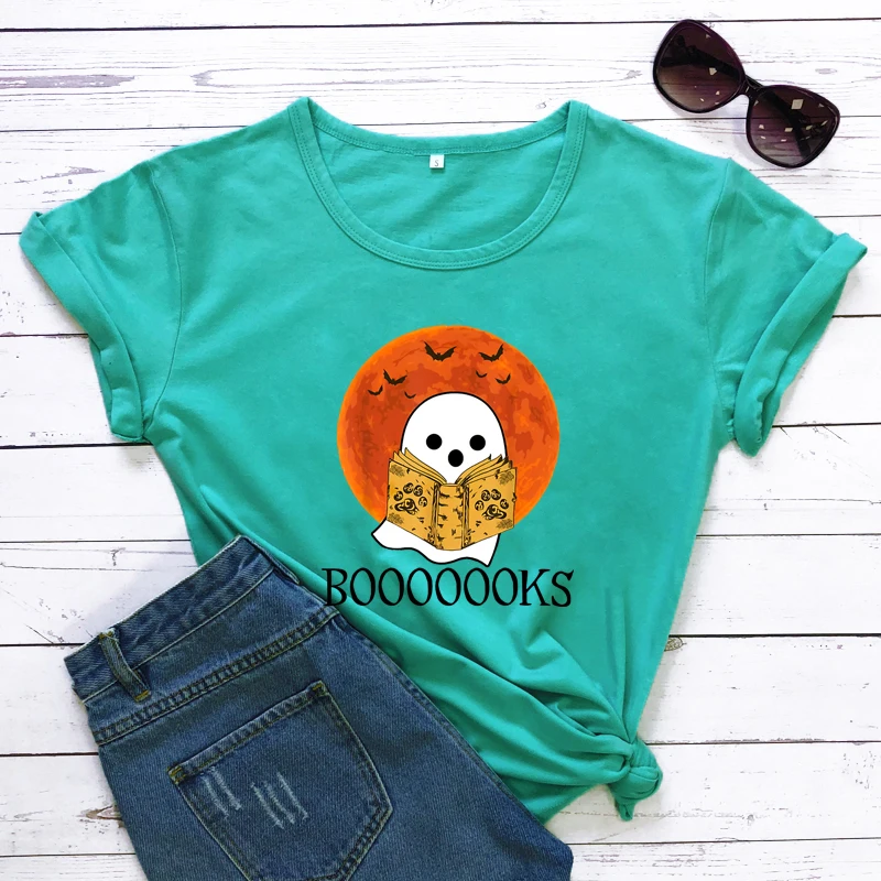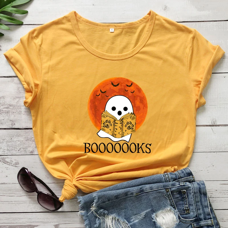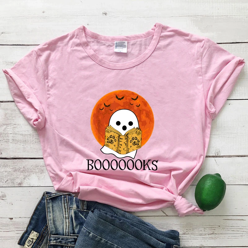 Цветная футболка booooks, ужасная футболка с изображением призрака, книги для чтения, милая Женская Осенняя футболка для Хэллоуина и вечеринки