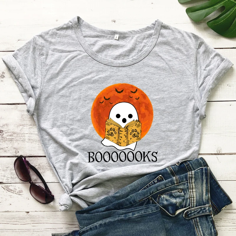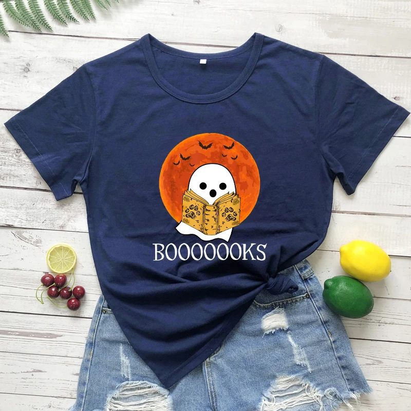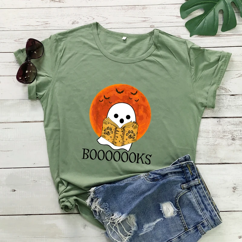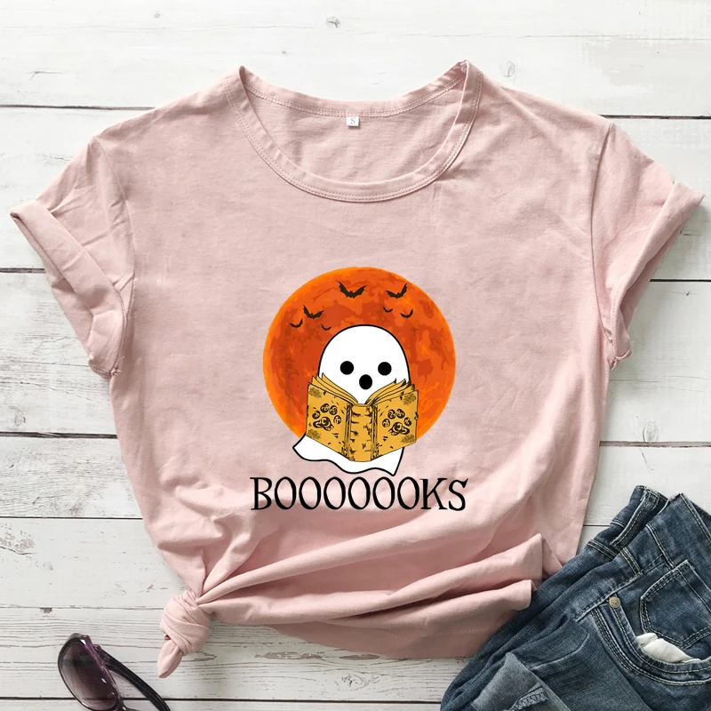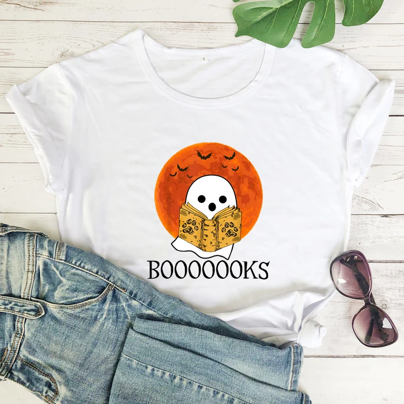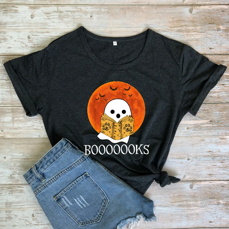 Цветная футболка booooks, ужасная футболка с изображением призрака, книги для чтения, милая Женская Осенняя футболка для Хэллоуина и вечеринки