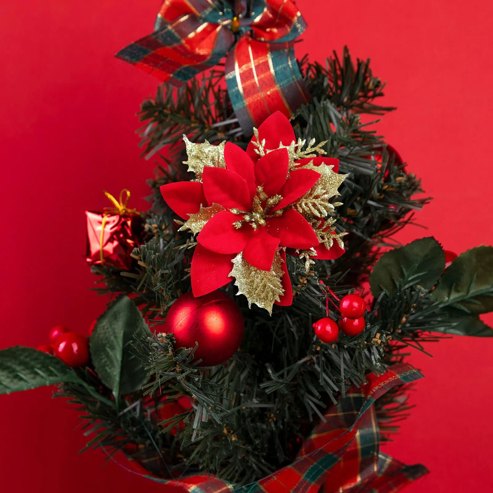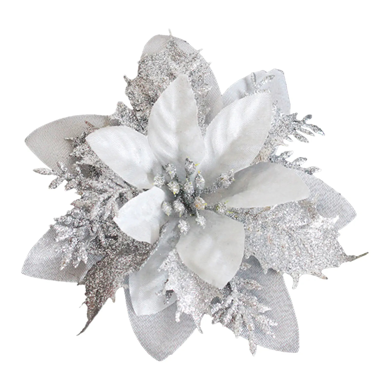 Декор для рождественских елок, блестящие Искусственные цветы со стеблями, Красный Золотой Серебряный цветок для свадебной вечеринки, праздничный декор, пуансеттийный куст, цветочный венок для декора на открытом воздухе и в помещении, аксессуары для рождественского декора