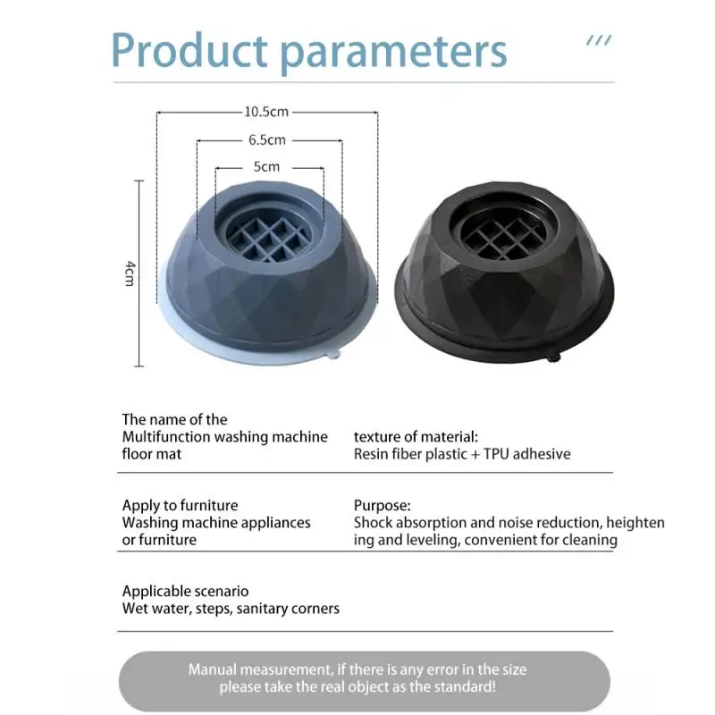 【Функциональные и чистящие стабилизаторы омывателя и сушилки могут поглощать вибрацию и аномальный шум бытовой техники, когда он используется, и защитить пол от царапин. Кроме того, он также может увеличить высоту бытовой техники и мебели, предотвратить их намокание и облегчить уборку.