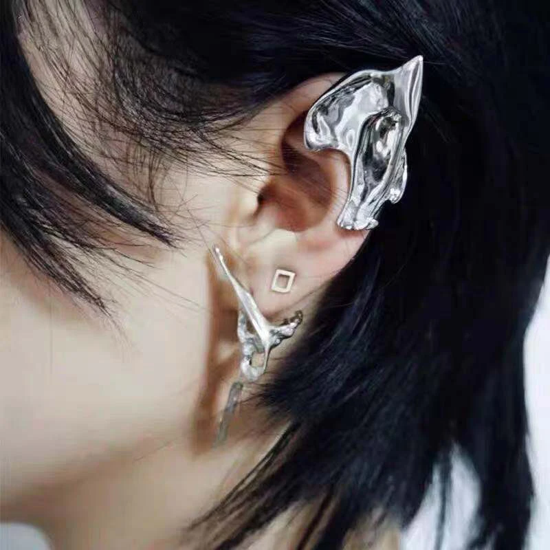 2021 новые модные панк Феи Клипсы Серьги для женщин готические нерегулярные металлические манжеты Необычные массивные серьги без пирсинга