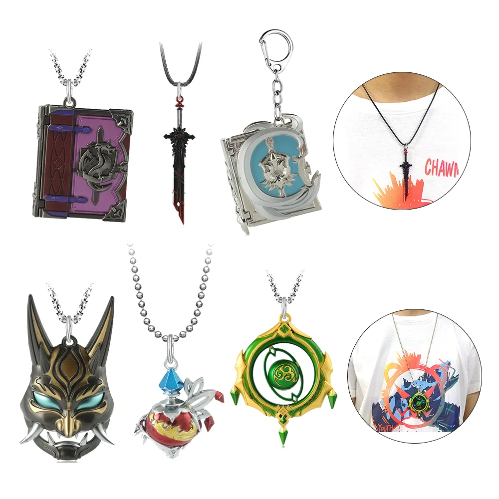 Игра Genshin Impact Cosplay Xiao Mask Four Winds брелок ожерелье вращающийся цинковый сплав кулон мужские ювелирные изделия Hombre аксессуары