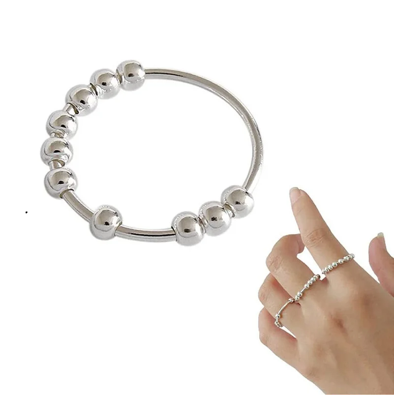 Золотистое серебристое кольцо от тревоги, кольца для женщин, кольца для облегчения тревоги, размер 5-10, кольцо для тревоги для девушек и мужчин