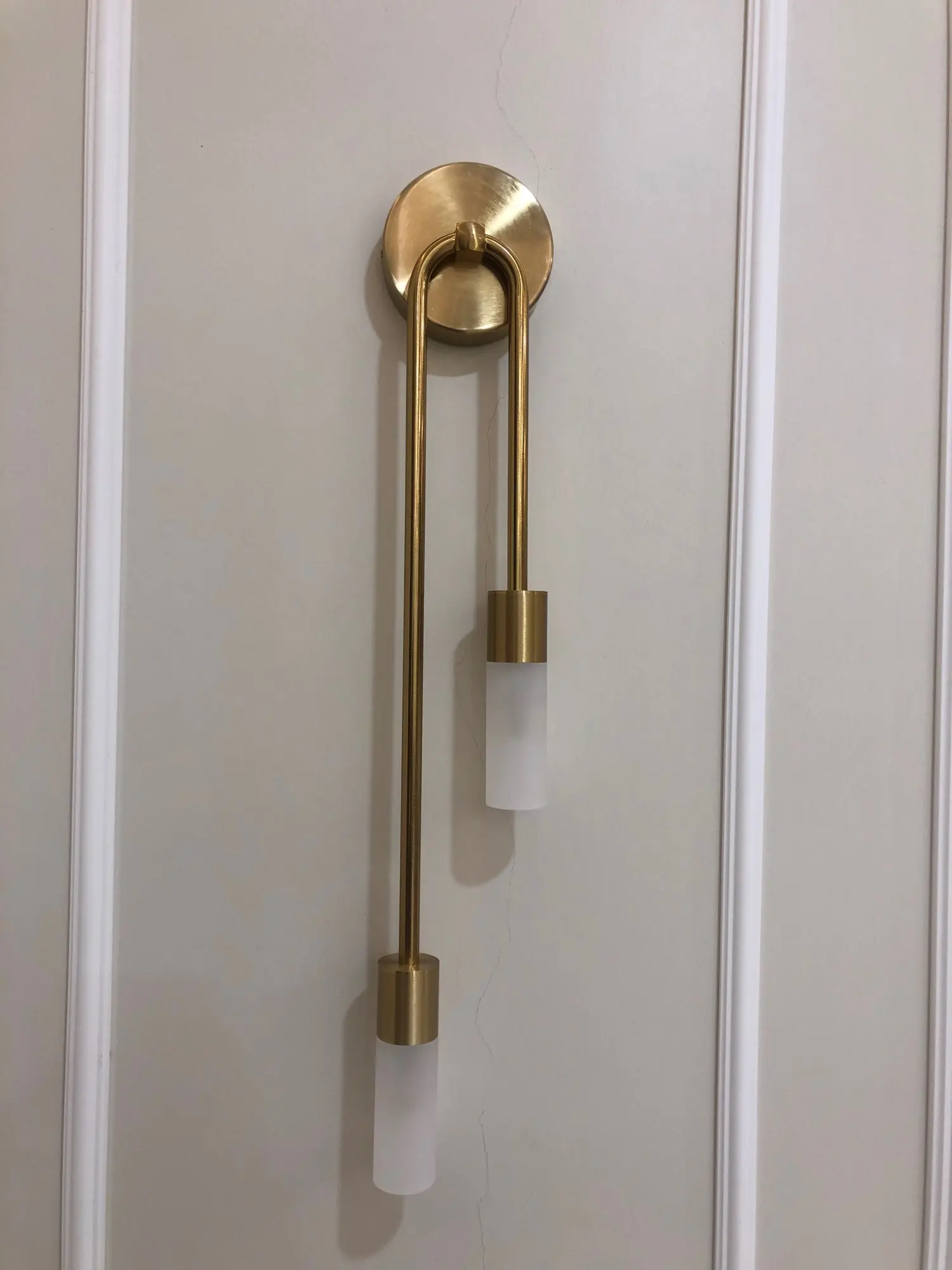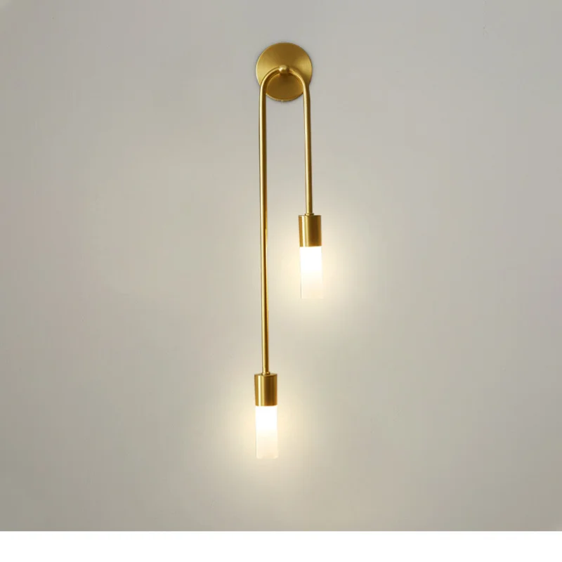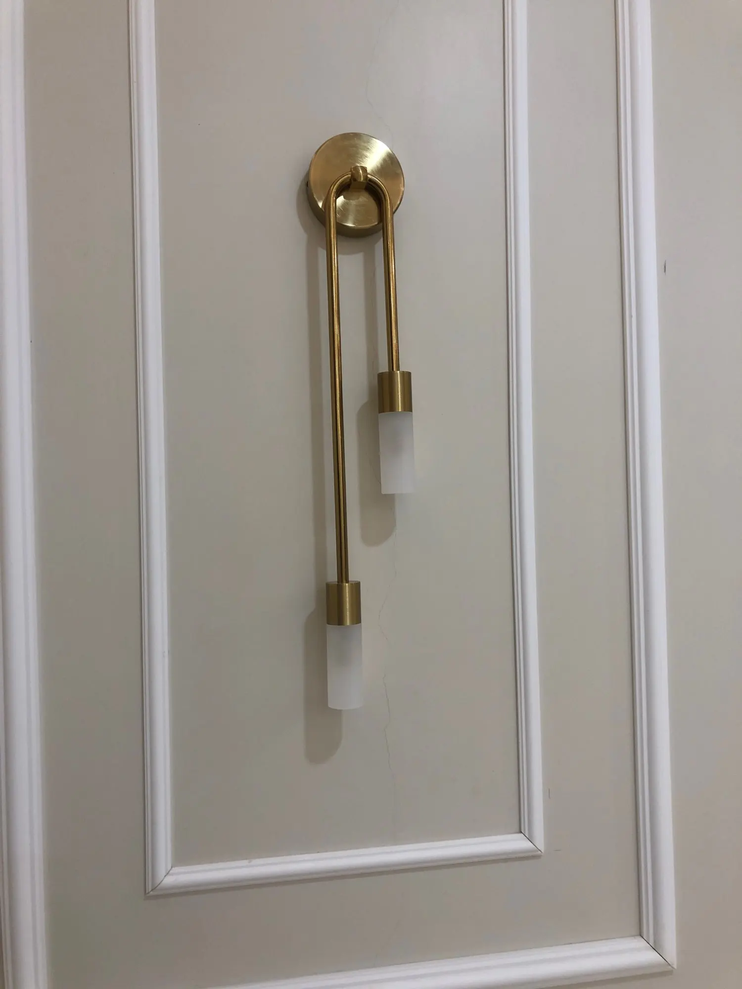 Светильник источник: G9 Материал: вся медь + стеклянный абажур Размер: длина 10 см * ширина 6 см * высота 55 см Цвет лампы: золотой Применение:Ресторан, кухонная столовая,Бар, гостиная, кабинет, офис, спальня, отель, коридоры Напряжение: 85-260 В (подходит для всех стран)