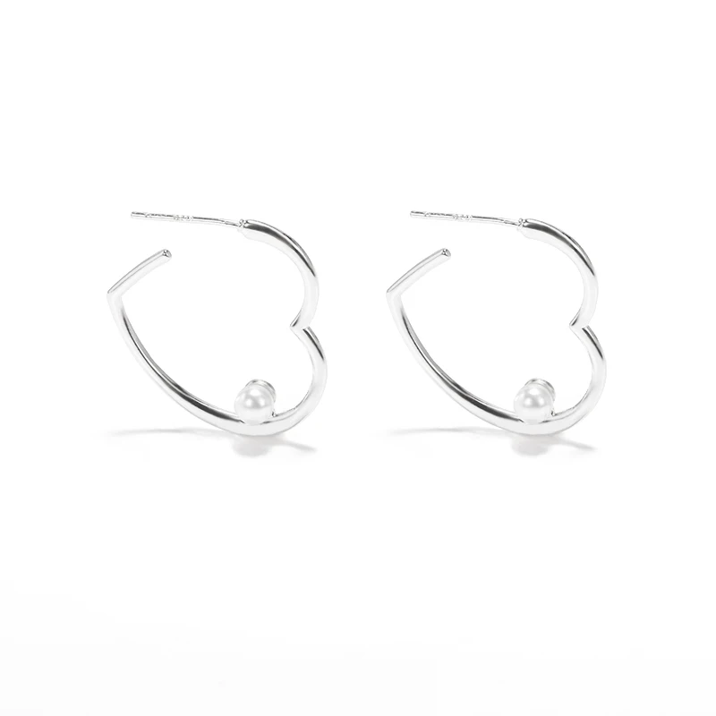 Серебряные серьги Silverlina 3 мм с сердцем из циркония и камнем дл...