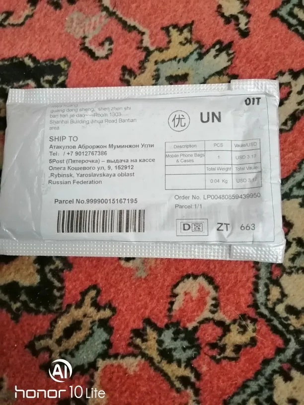 Страна: MA Material: redmi note 9 pro Color: ZH ZB Black Доставка: Cainiao Super Economy Global 04.10.2021