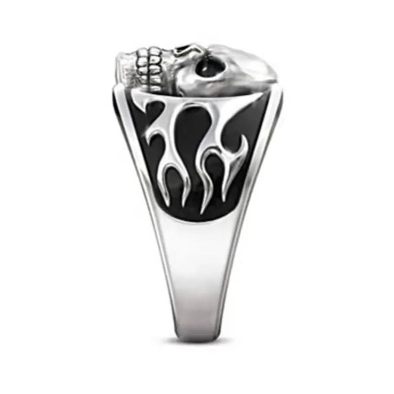 Мужское кольцо с черепом из нержавеющей стали, с тиснением пламени,...