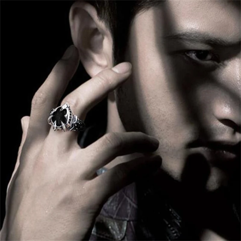 Мужское кольцо с фианитом в форме когтя, в готическом стиле