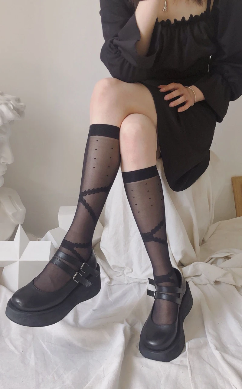 Сексуальные кружевные гольфы, длинные носки, женские прозрачные высокие эластичные чулки, носки в стиле "Лолита" для клубов Вечерние