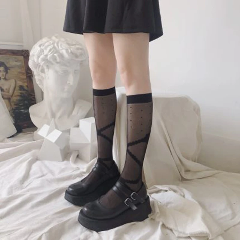 Сексуальные кружевные Высокие гольфы, длинные носки, женские прозрачные высокие эластичные чулки, носки Лолиты для клубов, вечерние