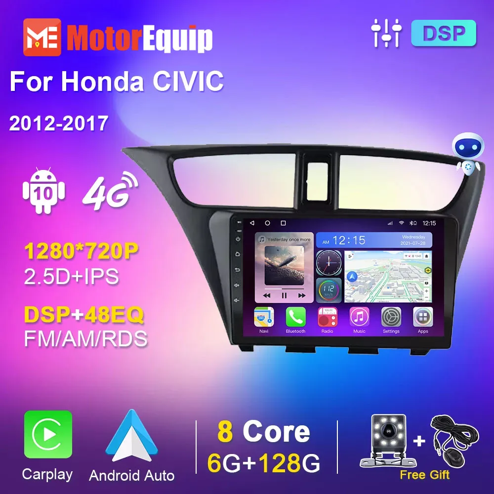 Автомагнитола на Android для Honda CIVIC Hatchback 2012-2017, автомобильное радио с GPS, автомобильный мультимедийный плеер с камерой DSP, Carplay, DVD, аудио, No 2 din