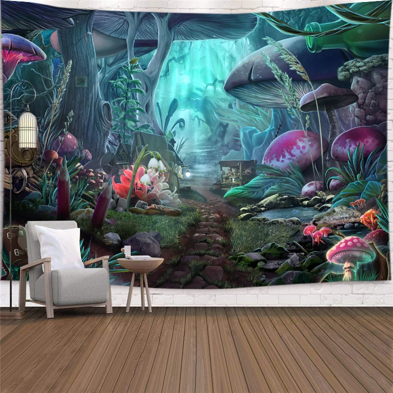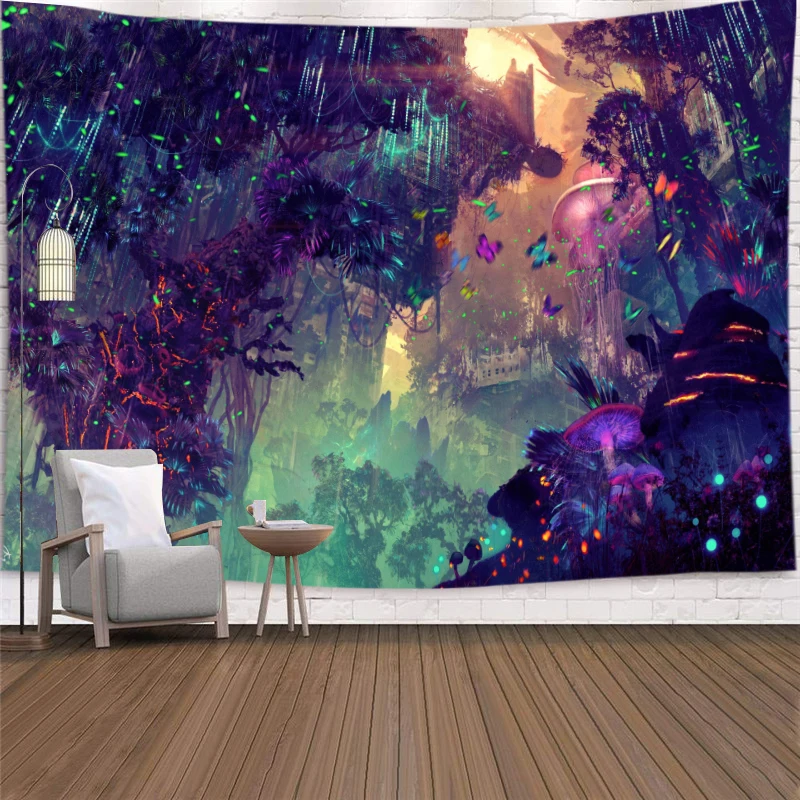Психоделический гобелен, древо жизни, солнечный гобелен с Луной, настенный, Триппи, гриб, лес, Бабочка, украшение для дома, настенный потолок