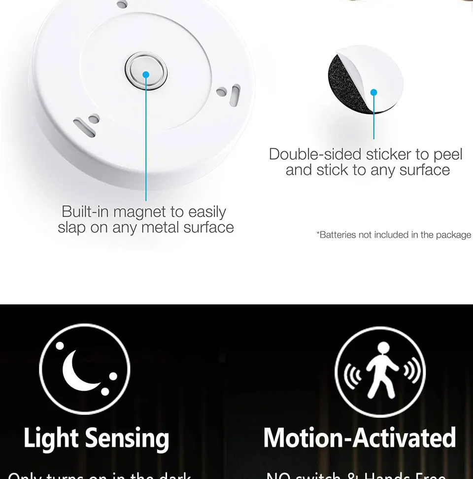 Светильники с датчиком движения светодиодный ночники на батарейках, освещение для чулана, лестницы, настенные светильники для прихожей, ванной, спальни