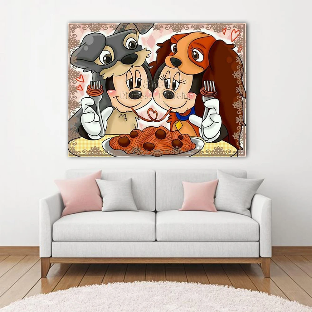 Алмазная живопись мультфильм Микки Минни пара любовь целуй 5D DIY м...