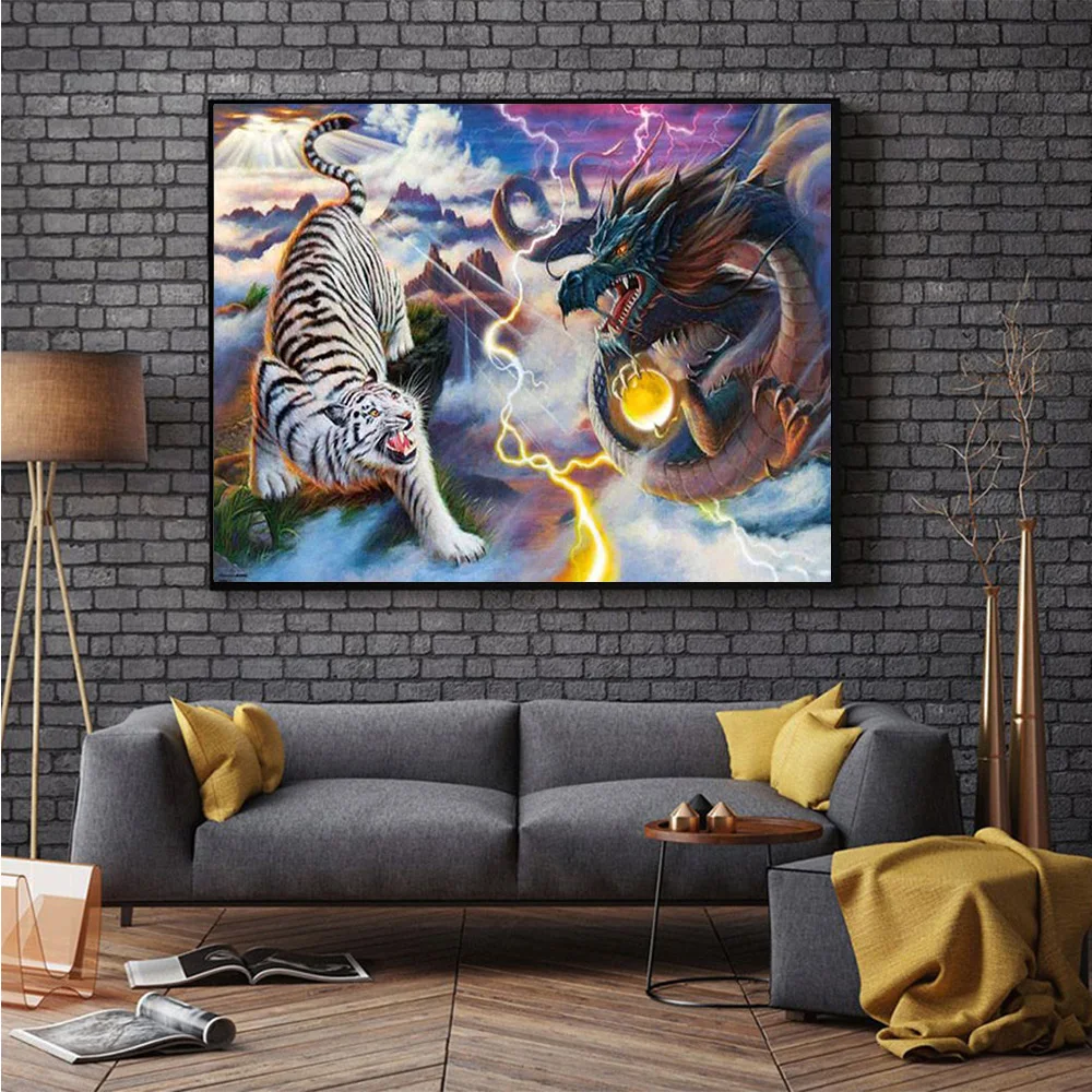 Алмазная живопись, огненный леопард, молния, леопард, животные, сде...