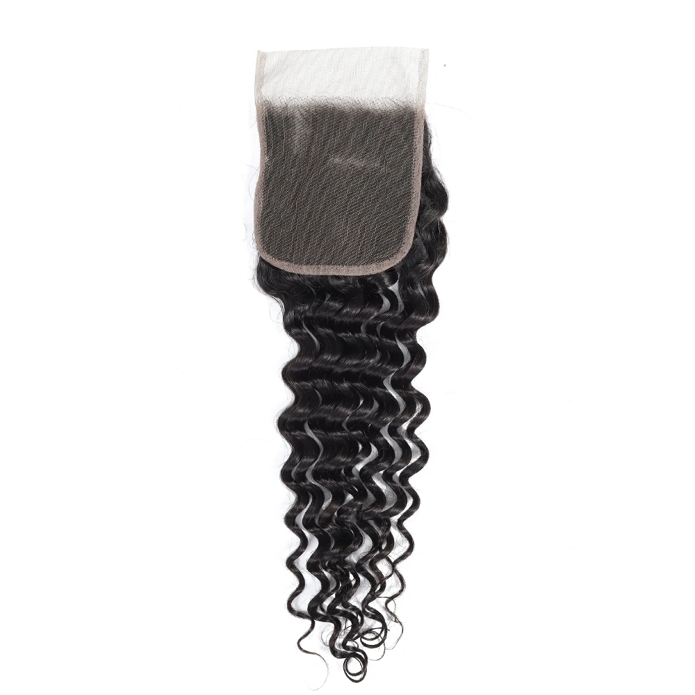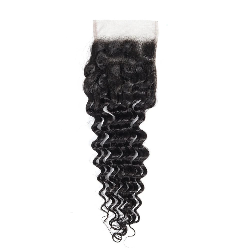 Кудрявые бразильские волосы с глубокой волной, волнистые кудрявые человеческие волосы, кружевная застежка 4x4, предварительно выщипанные для женщин