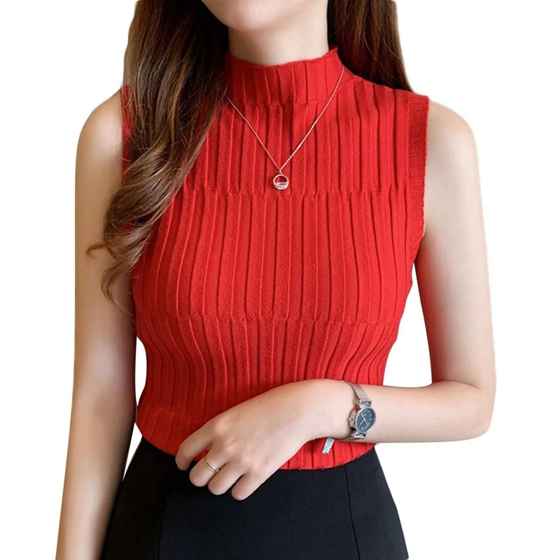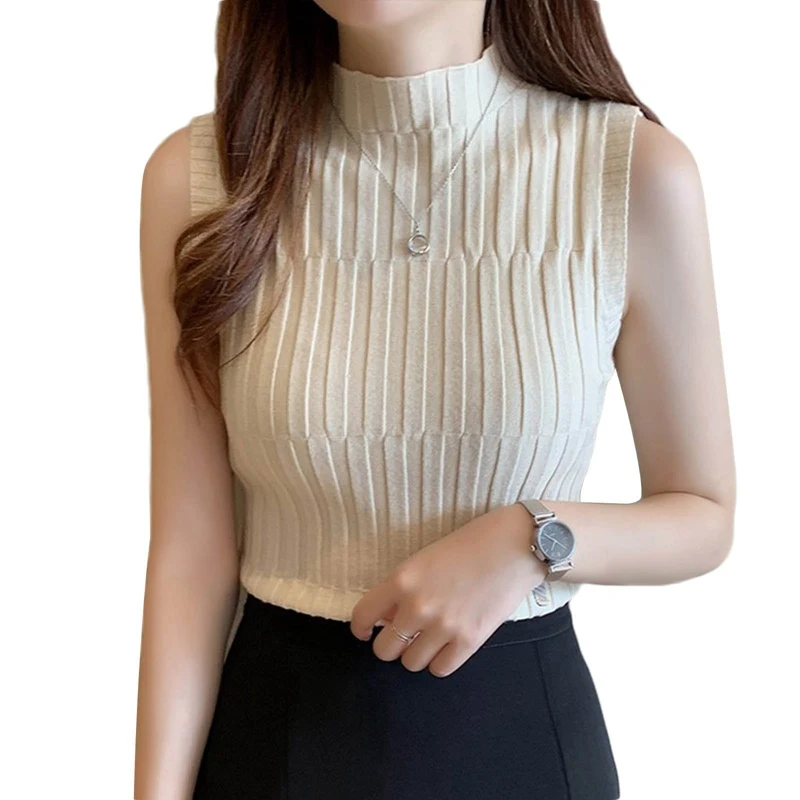 Женская облегающая трикотажная футболка без рукавов, с высоким воротником и капюшоном