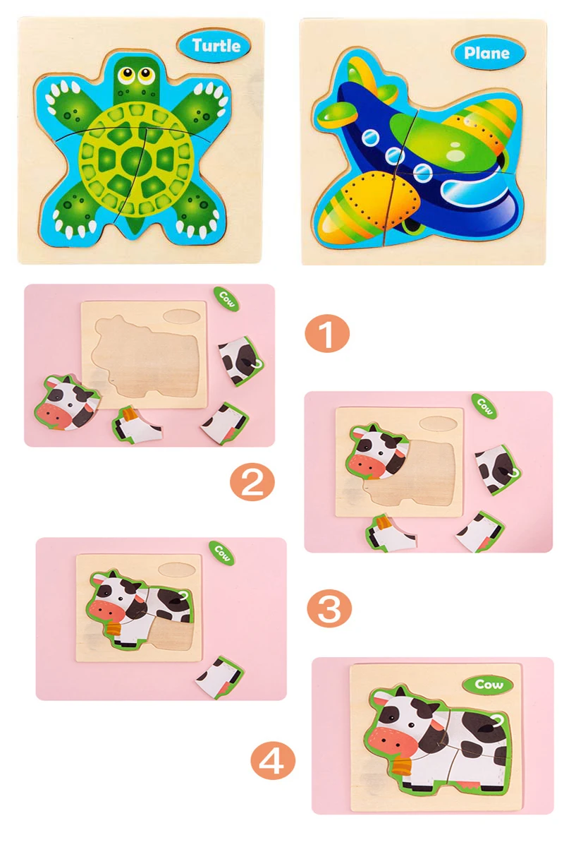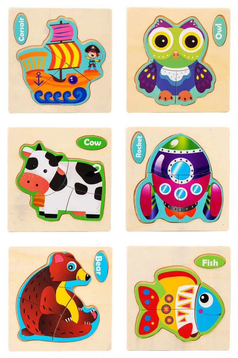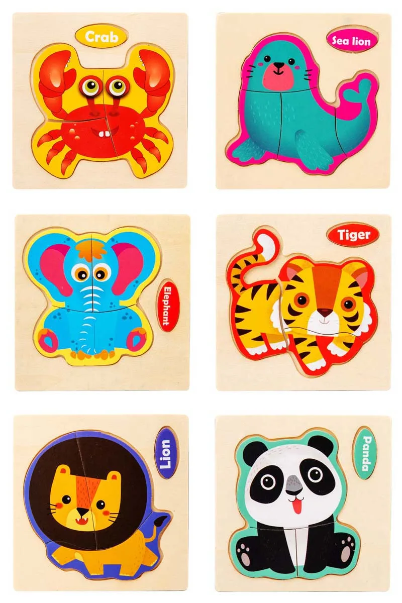 3D Развивающие игрушки для детей, деревянный пазл, головоломки для детей, Деревянные 3d Мультяшные животные, интеллектуальные головоломки для детей WYW