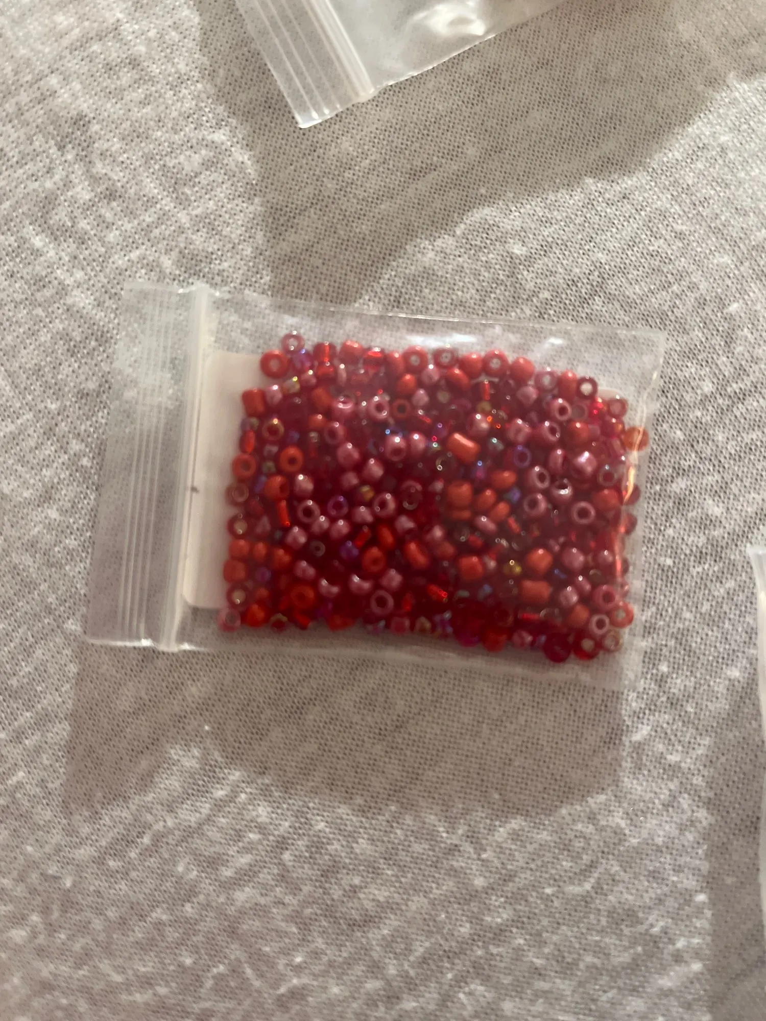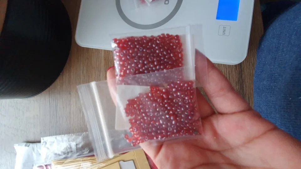 Получила 5 пакетиков бисера предположительно по 300 штук в каждом. Бисер очень китайский, разноразмерный. Таких денег не стоит.