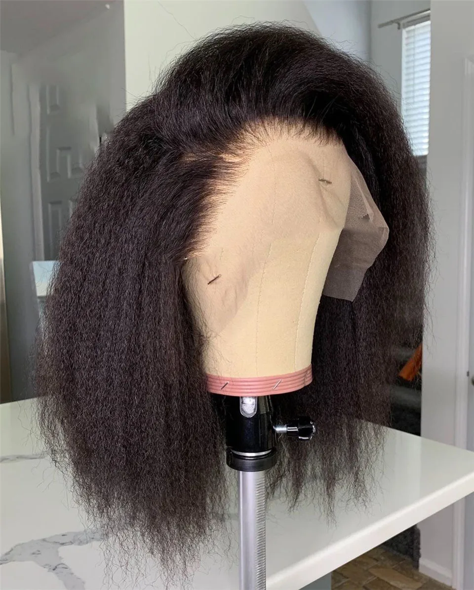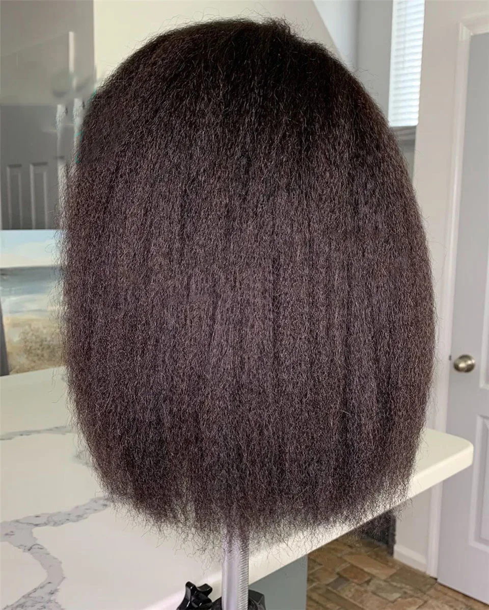 180% Плотность Yaki 14 дюймов короткий Боб черный курчавый прямой синтетический кружевной передний парик для черных женщин детские волосы без клея