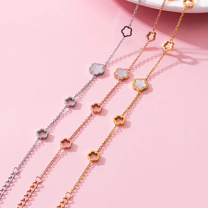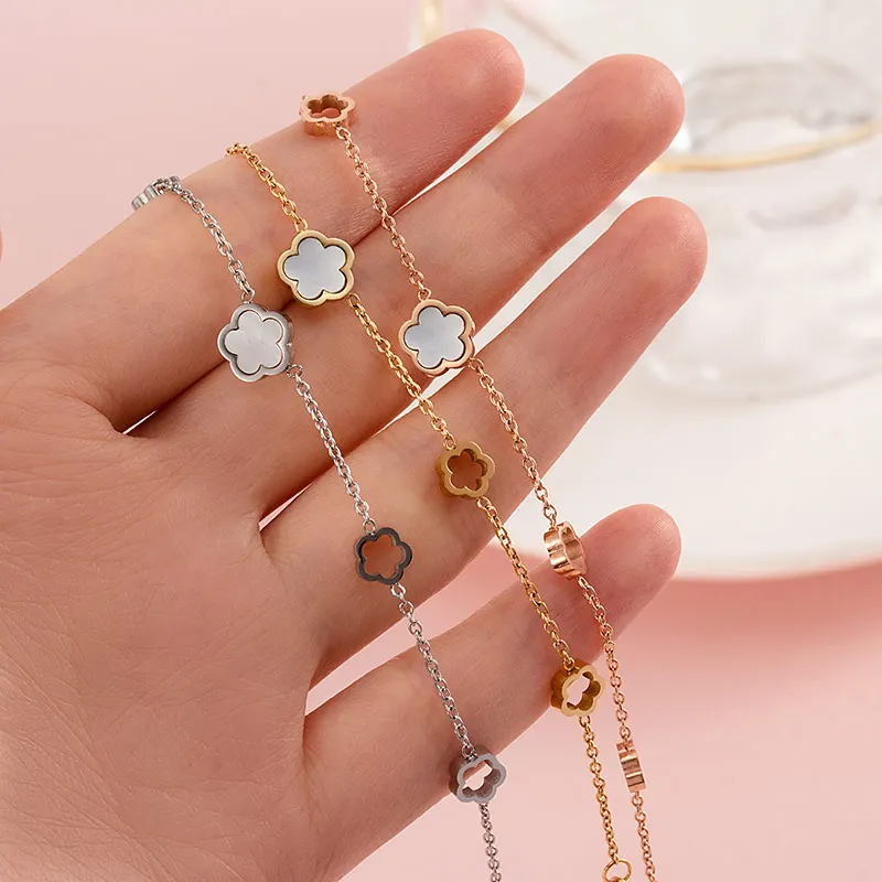 POXAM роскошный элегантный белый браслет-цепочка с цветами для женщин модные браслеты из нержавеющей стали на руку 2021 Ювелирные изделия Подарки