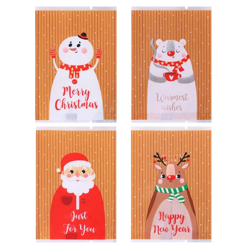 100 шт. рождественские целлофановые пакеты, рождественские конфеты, пакеты для печенья, товары вечерние, новогодние подарки посылка для выпечки, рождественские украшения