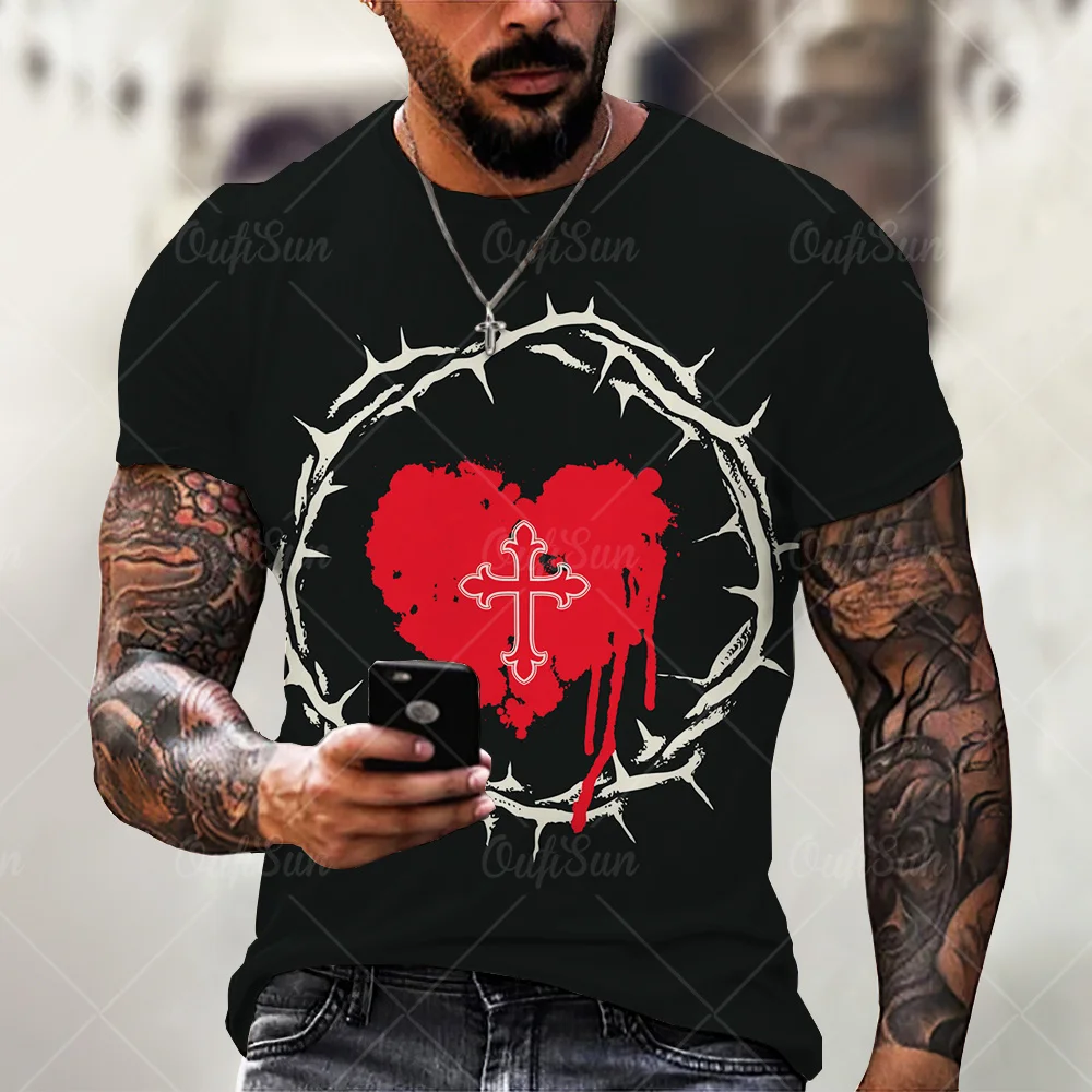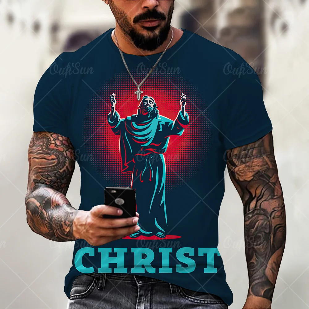 Футболка мужская оверсайз с принтом Иисуса Христа, стильная тенниск...