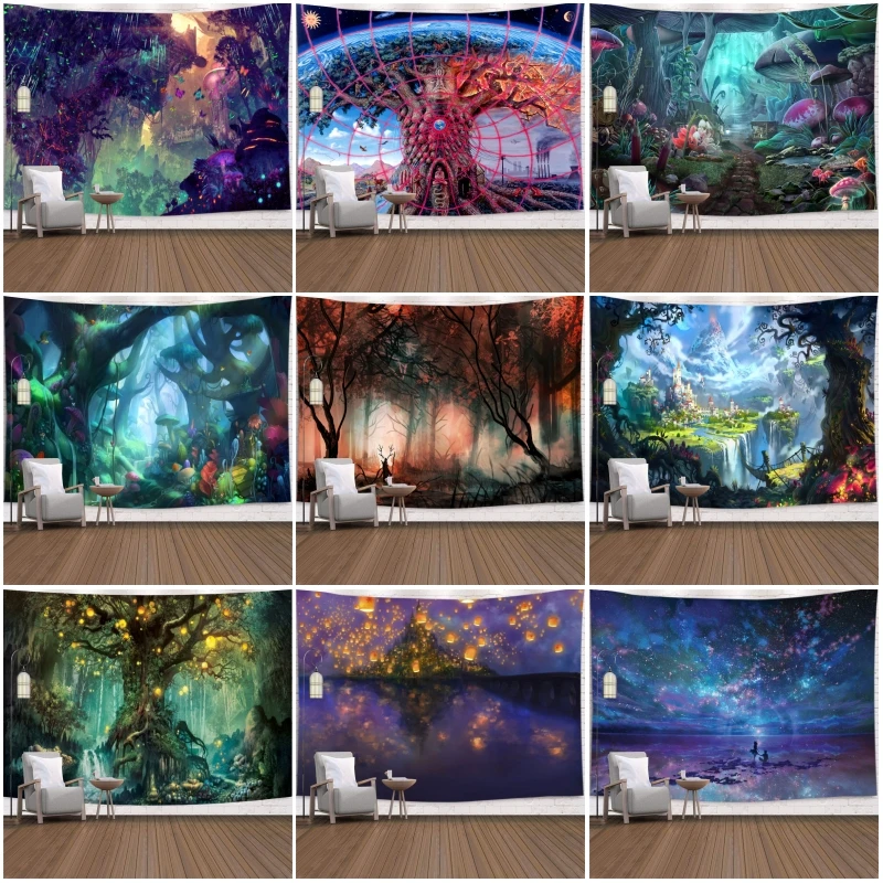 Психоделический лес, гобелен для спальни, настенный подвесной ретппи гриб, гобелены, искусство, Настенный декор, ткань, потолок, ковер, одеяло