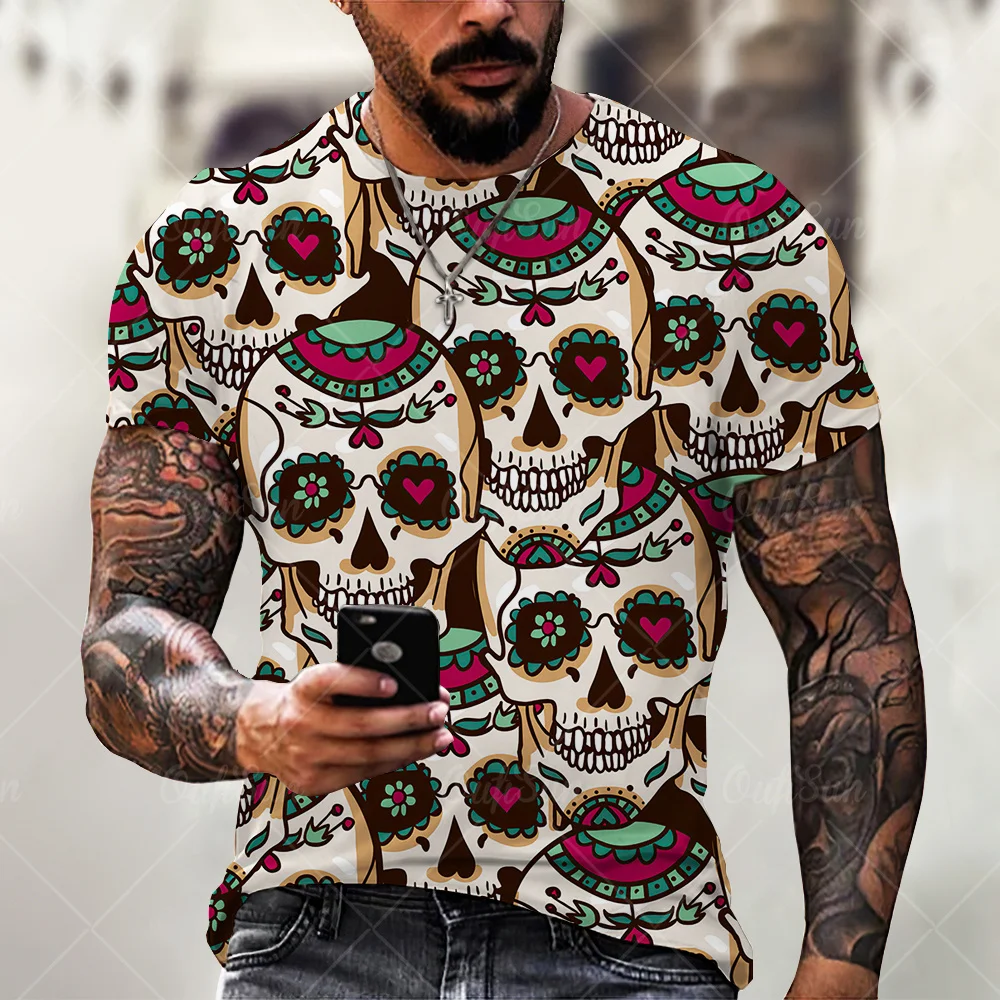 Мужская футболка с принтом черепа, Повседневная футболка с коротким...