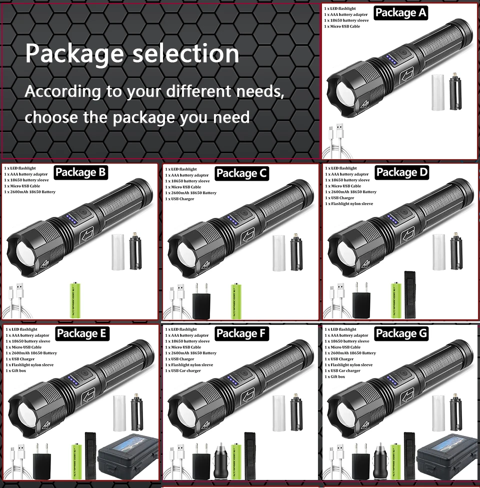 Фонарик XHP50XHP70 с USB-зарядкой, Водонепроницаемый Многофункциона...