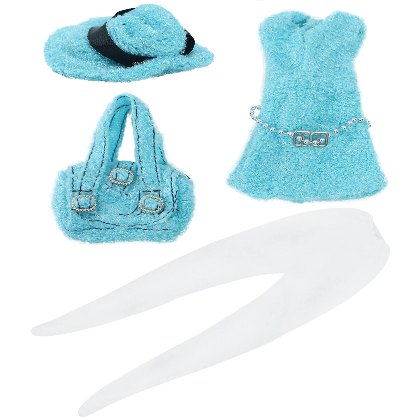 Элегантный синий комплект BJDBUS, наряд для кукол, мини-платье, шляпа, большая сумочка, кружевные чулки, Одежда для кукол Барби, аксессуары для детских игрушек