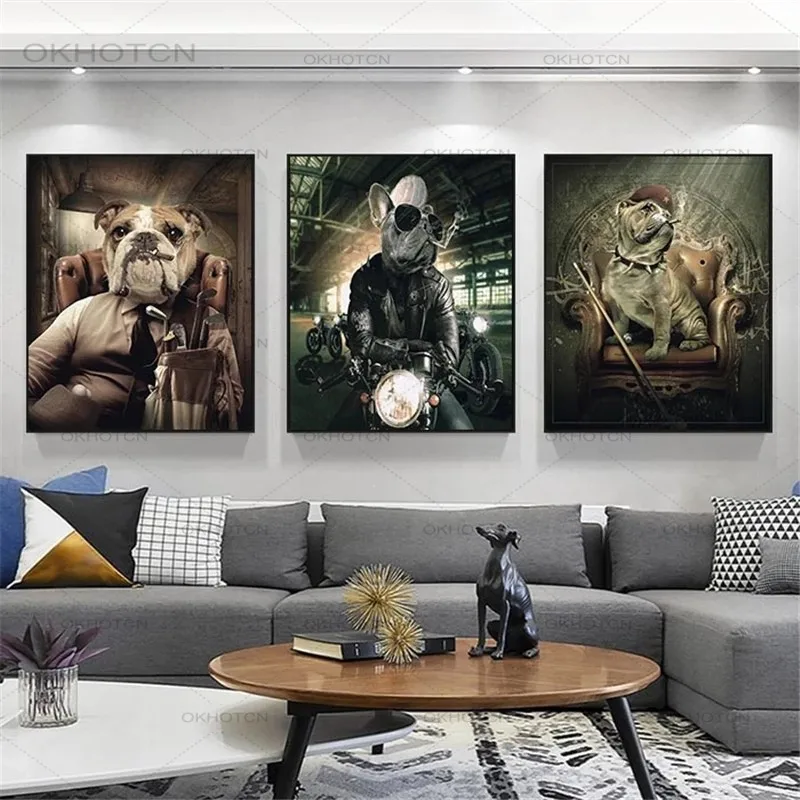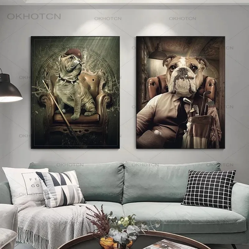 Модные плакаты и принты собаки курительной сигары животные бульдог картина Современная Настенная Картина на холсте для украшения гостиной