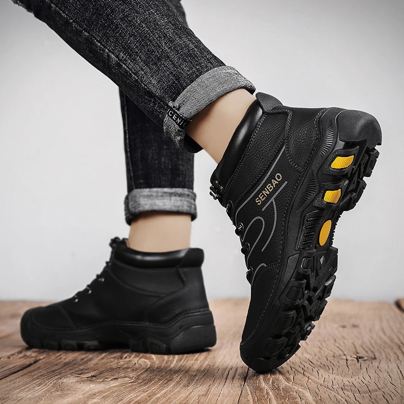 Брендовые зимние мужские ботинки, теплые мужские зимние ботинки, вы...