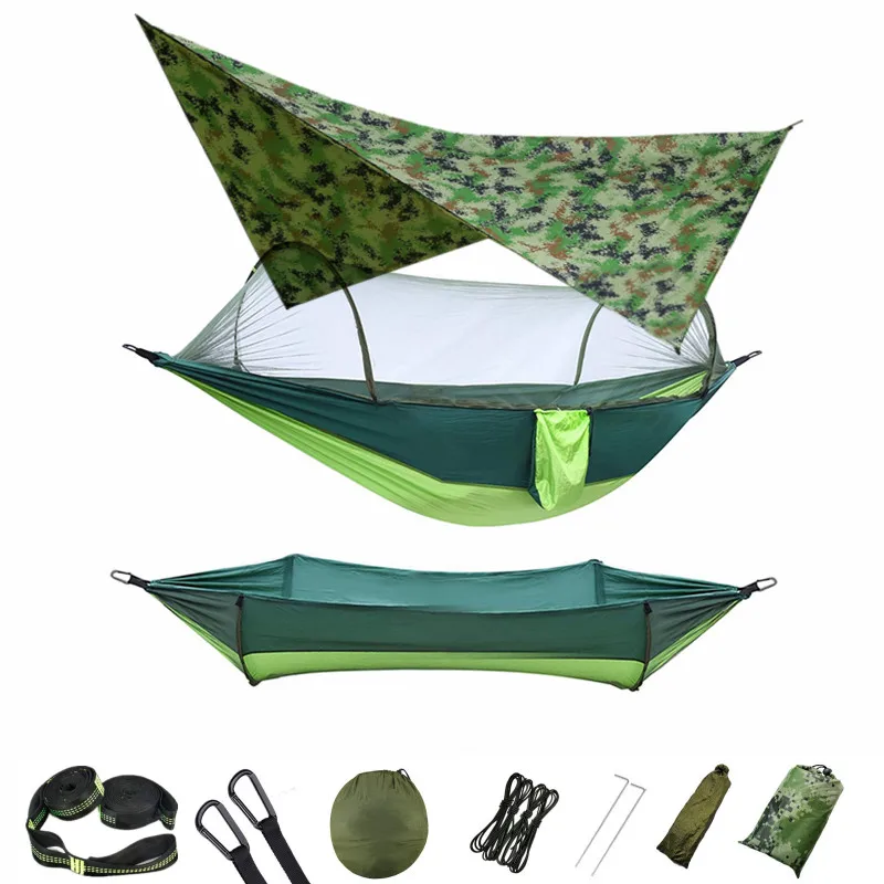 Портативный двойной гамак для кемпинга с москитной сеткой и накидкой от дождя, легкий комплект для пеших прогулок, путешествий, полный комплект
