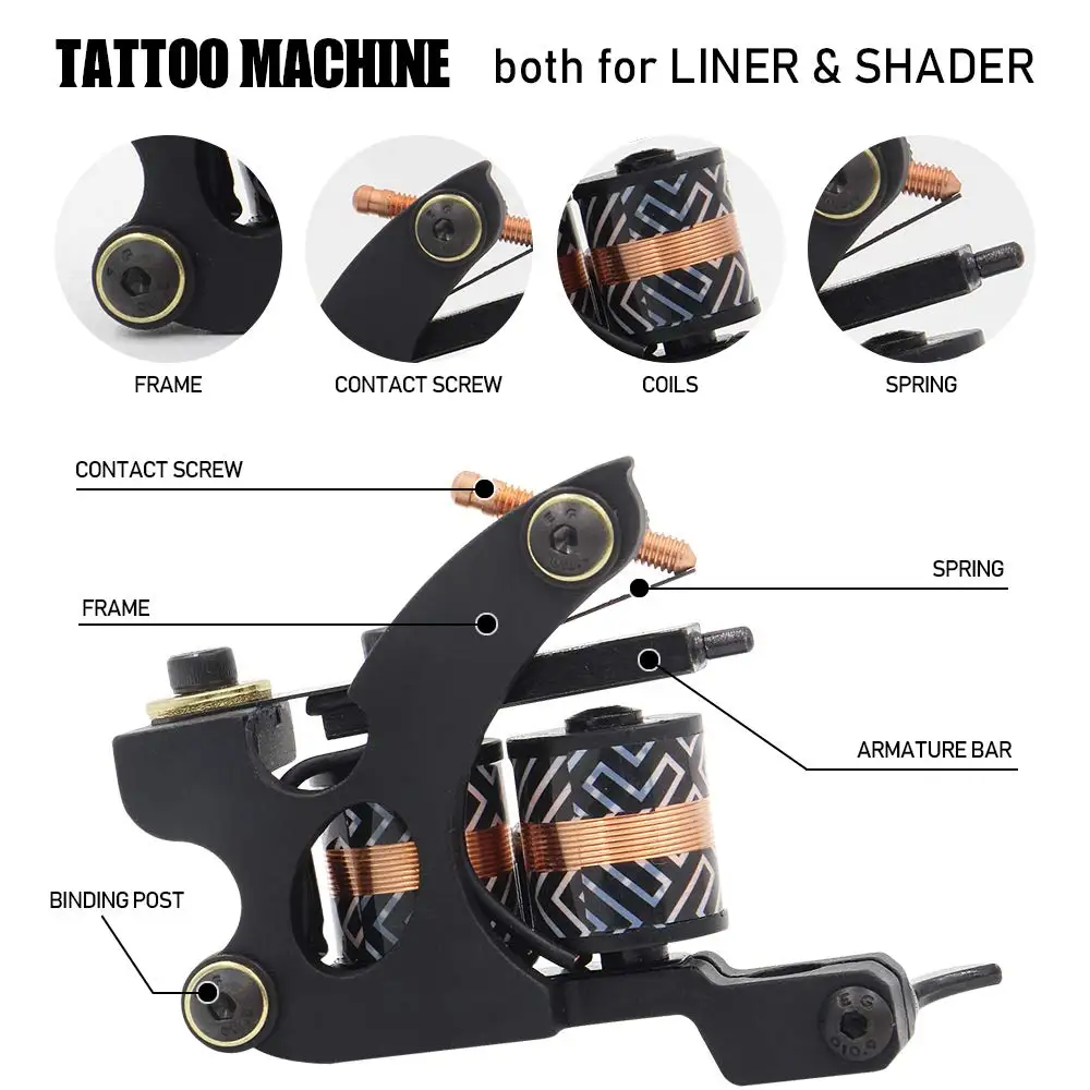 【Машина для тату в рулонах-EMALLA новая катушка для тату-автомата с утюгом, это машина двойного назначения для линии и шейдера, и машина была модернизирована, чтобы улучшить ее рабочие характеристики и срок службы. Чугунная тату-машина 10 катушек для обертывания. Рама машины изготовлена из высококачественного железа, легкого и низкого вибрации.