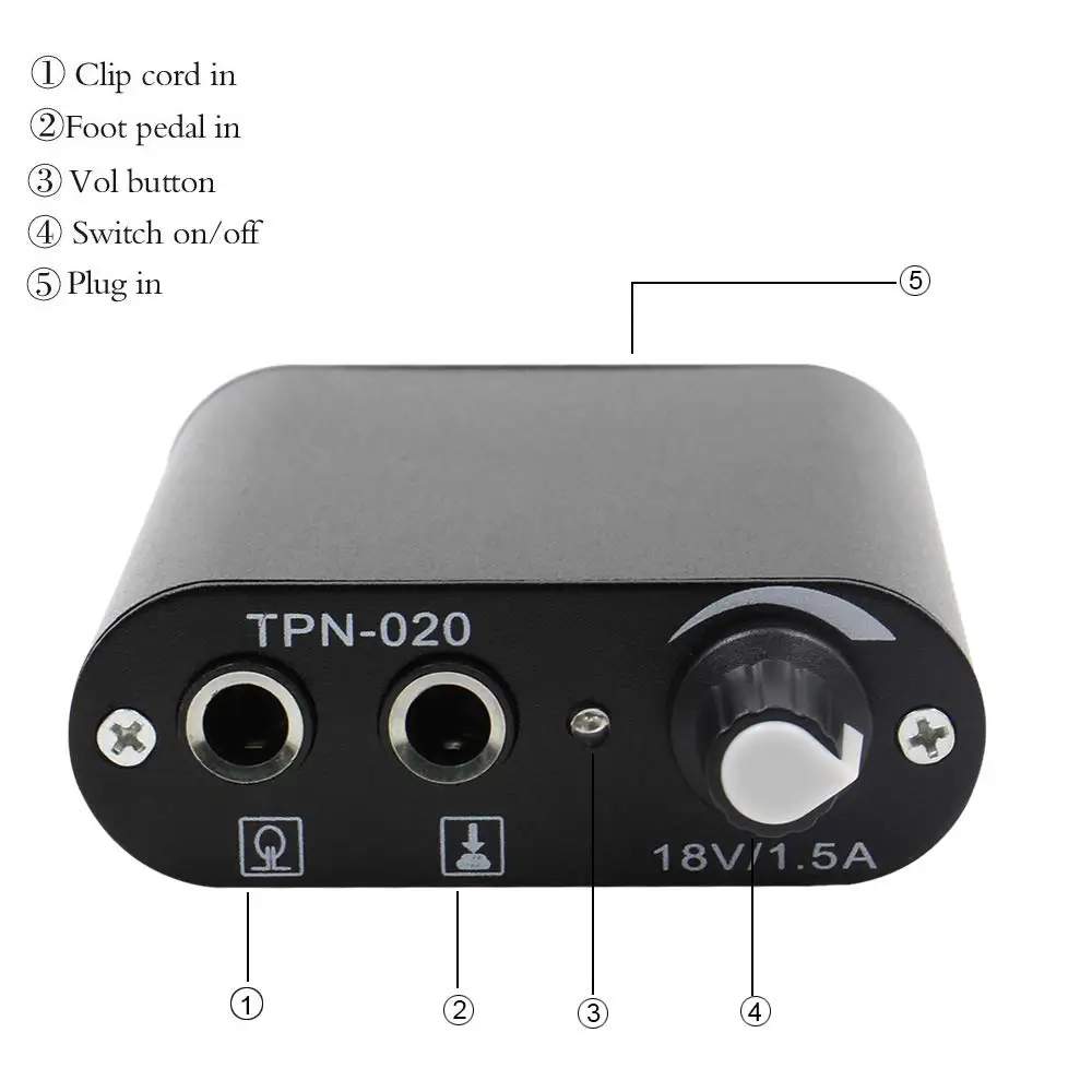 【Отличное качество питания SUPPLY】-Превосходный металлический корпус повышает прочность и долговечность благодаря красивому внешнему виду и отличному качеству изготовления. Точная настройка напряжения для профессиональной и точной работы. И подходит для всех видов тату-машин, идеальный выбор для татуировок. Также компактный и удобный для переноски.
