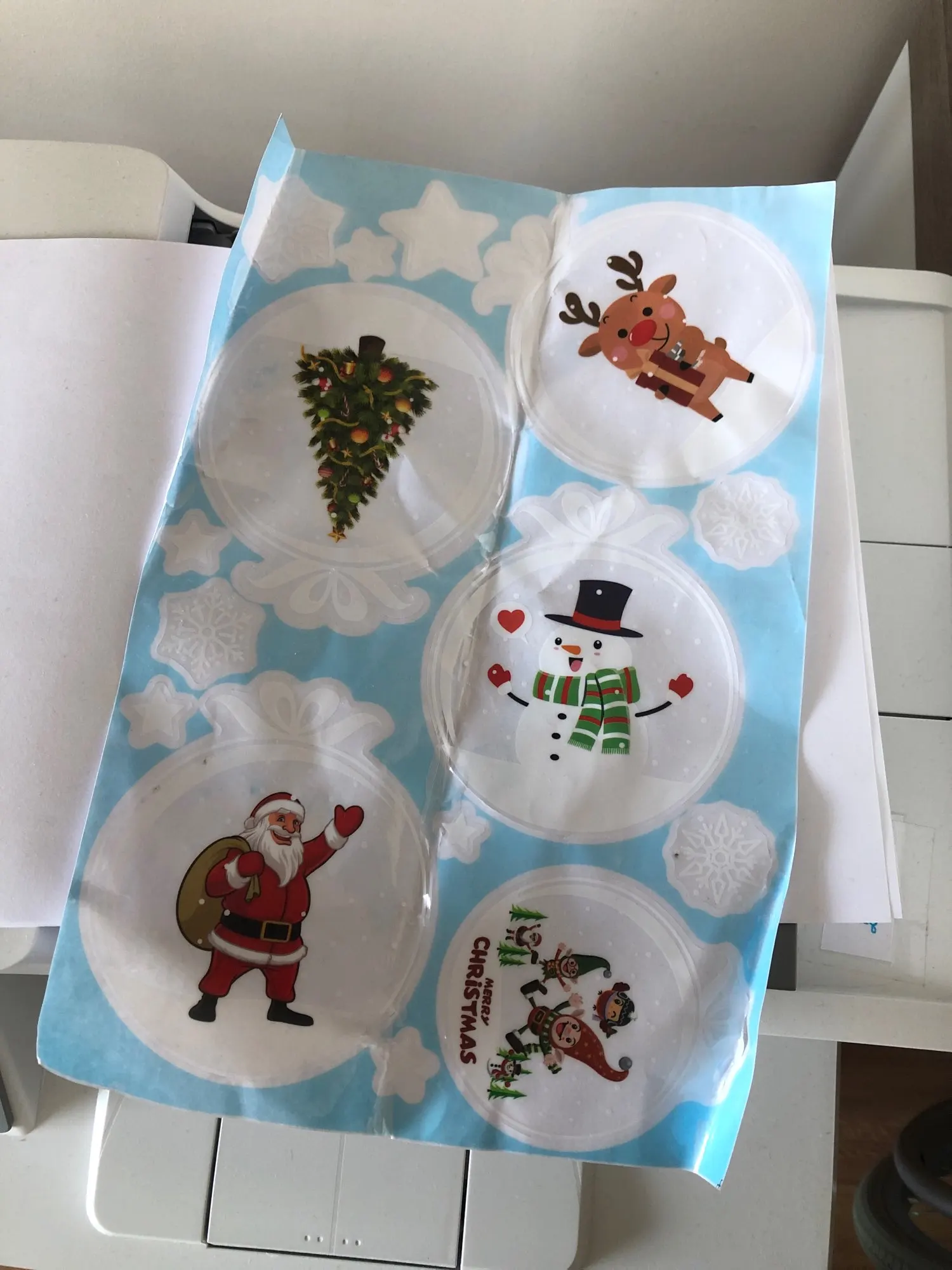 Наклейки на стекло, новогодние наклейки на окно, милые, Санта-Снежи...
