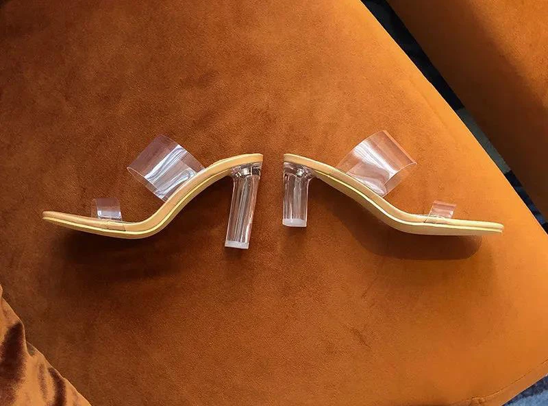 Летние женские туфли-лодочки; Босоножки; Прозрачные шлепанцы на каблуке 9 см; Пикантные женские прозрачные шлепанцы с открытым квадратным носком на высоком каблуке; Прозрачные Босоножки на каблуке