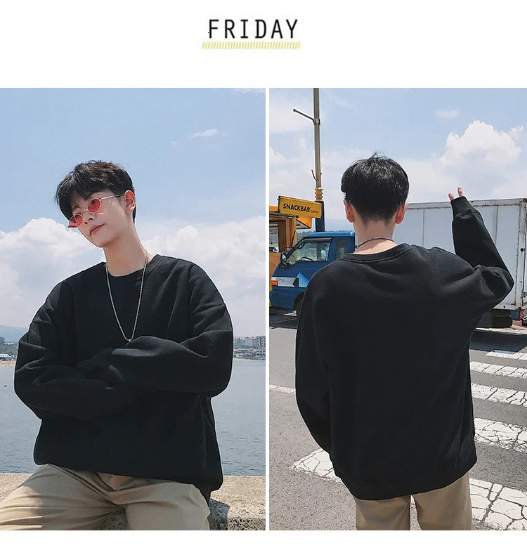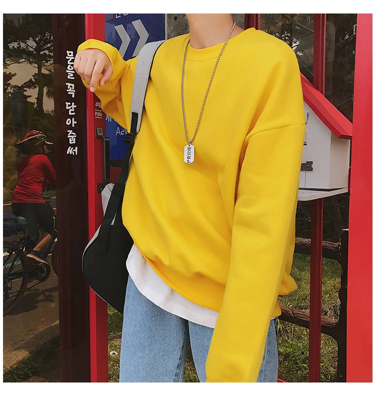 Свитшот INXYZ мужскойженский повседневный, модный однотонный пуловер в стиле оверсайз, корейский стиль, Свободный Топ, весна-осень 2022