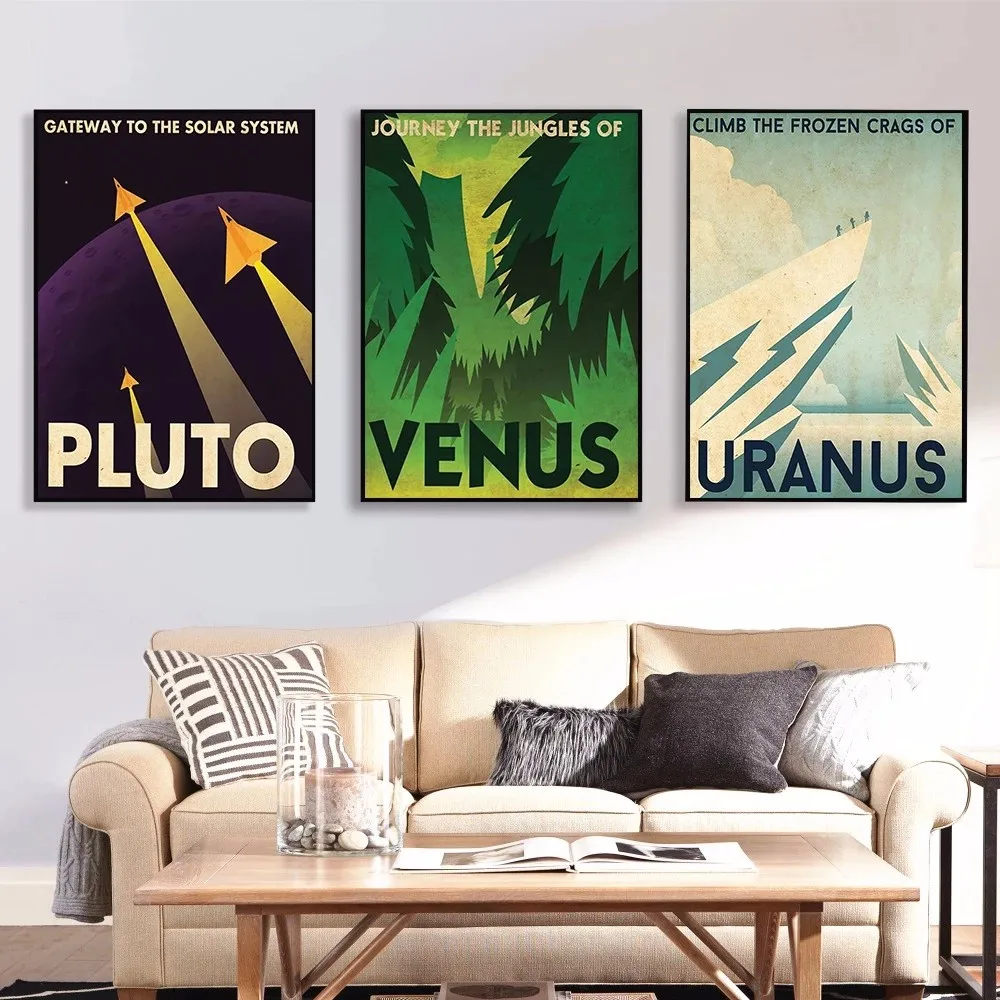 Винтажные постеры Космос Вселенная планета путешествия Марс Сатурн ртуть Плутон венерина Юпитер земля уран Холст Живопись ретро настенное искусство