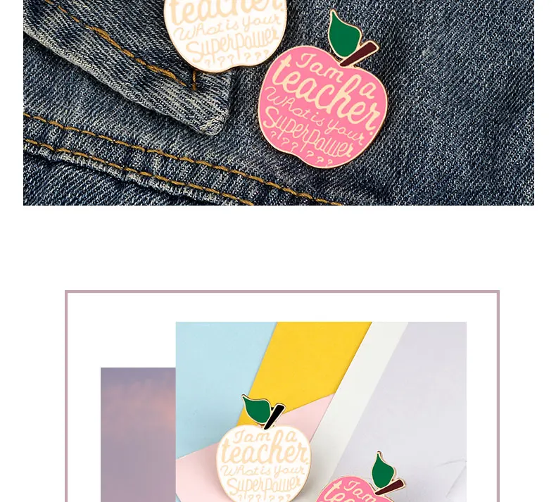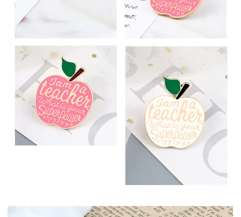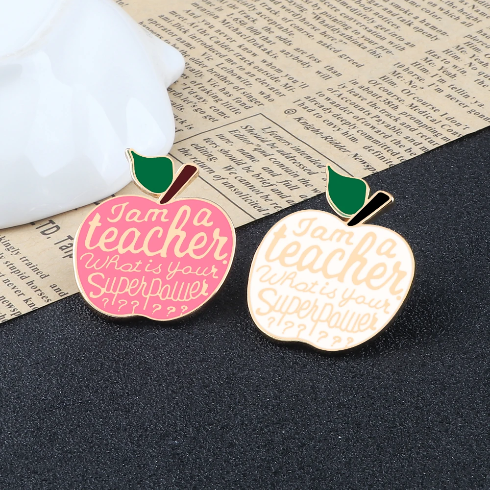 Новые креативные подарки на день учителя, белая розовая брошь для учителя яблока, эмалированные булавки, высококачественные металлические значки, металлические значки, аксессуары Brosche
