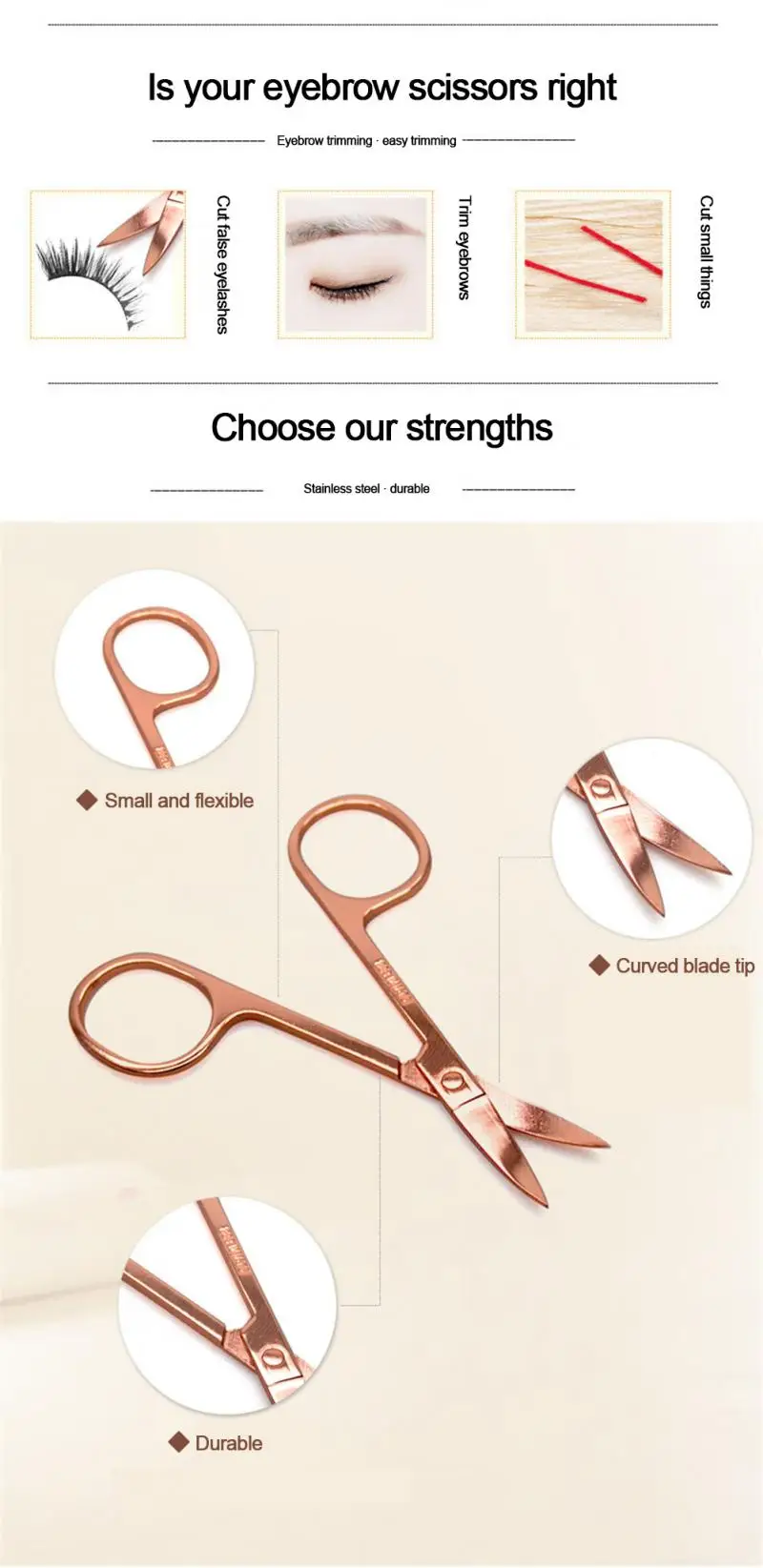 Стальные ножницы для бровей имеют наконечник, который позволяет легко обрезать маленькие волоски возле лба.