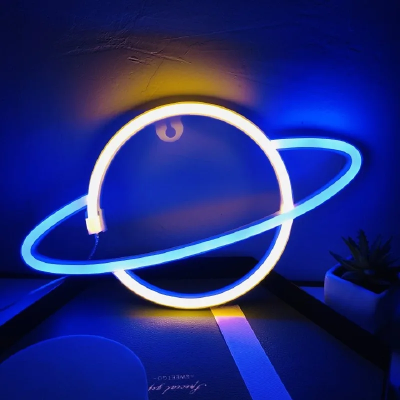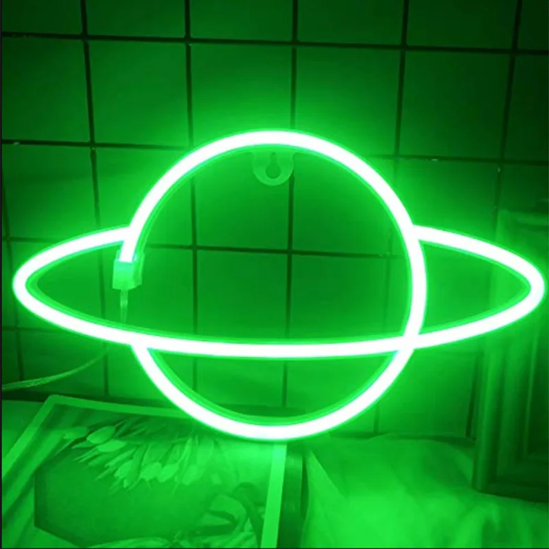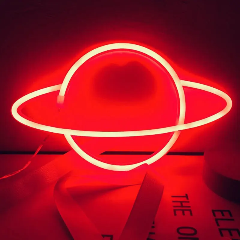 Светодиодная неоновая вывеска в форме планеты, ночсветильник с питанием от USB и аккумулятором, декоративный ночник для спальни вечерние, гостиной, рождественский подарок